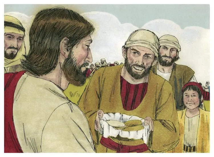 एहर बाइबिल कर कहानी ले लेहल गईस है: मती 14 : 13-21 , मरकुस 6 : 31-41 , लूका 9 : 10-17 , यूहन्ना 6 : 5-15
